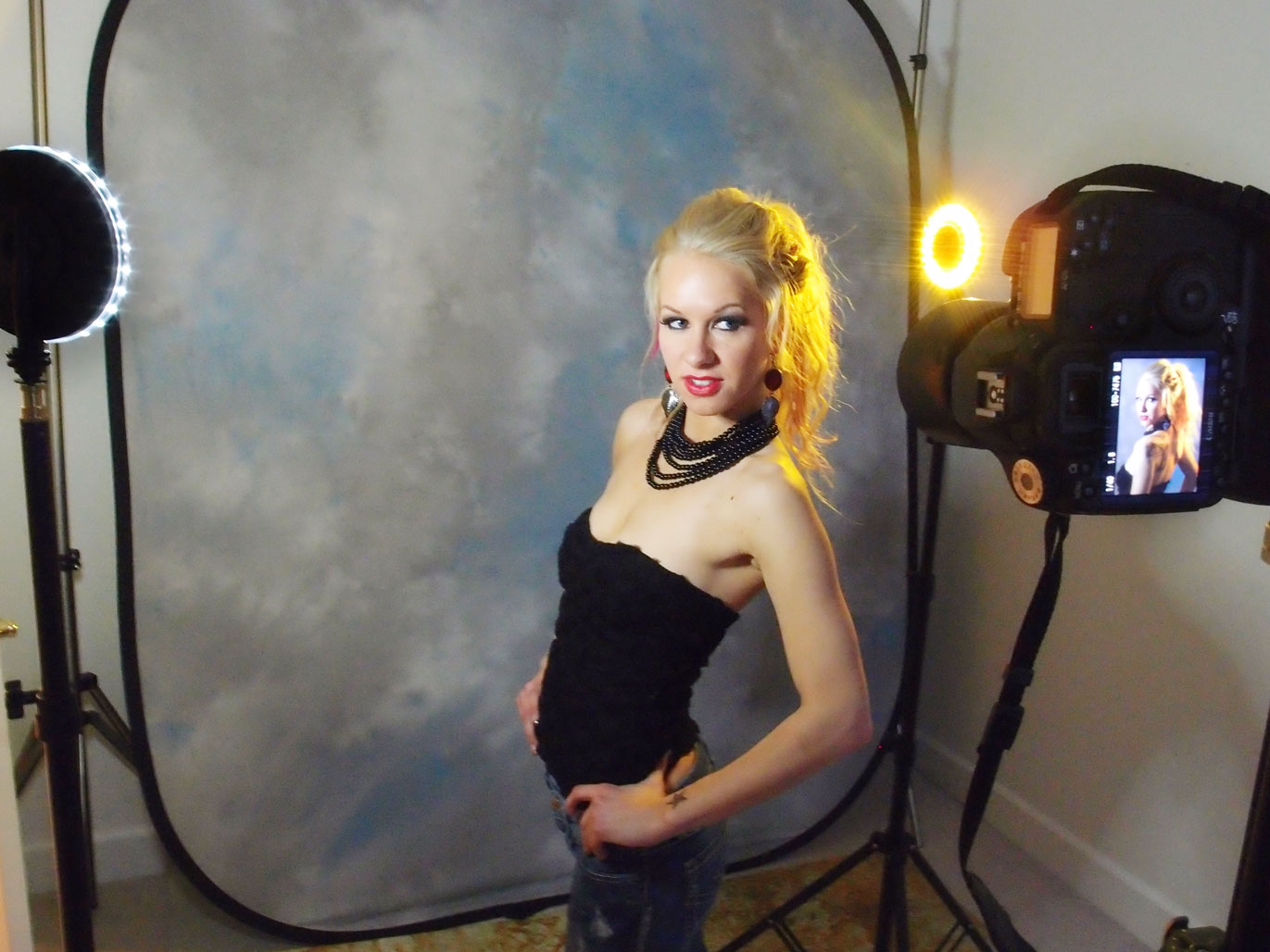 How I made this portrait: This image was from the second of three shoots that I had with Stevie. She ultimately gave up modeling because of too many bad experiences with photographers but she worked with me until Shutterbug stopped paying model fees for women I photographed for lighting equipment reviews. To photograph Stevie in my 11×15-foor home studio I used two LED lights that were part of Rotolight’s RL48 Interview Kit, with one light placed on either side of her. The camera used was a Canon EOS 50D with EF 85mm f/1.8 lens and an exposure of 1/50 sec at f/1.8 (for minimum depth-of-field) and ISO 640. The background was a 6×7-foot Westcott Masterpiece April Showers Collapsible Illuminator muslin background.