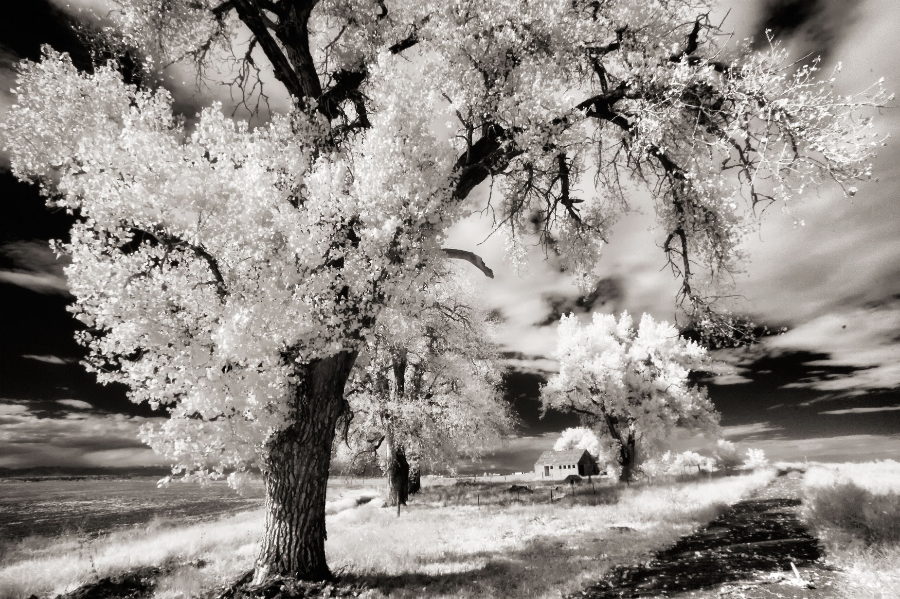 How I Made this Photograph: I made this image near Brighton, Colorado using a Canon EOS D6-—not a 60D— that was converted to infrared capture using a 720nm filter. The lens was a Tamron AF 11-18mm f/4.5-5.6 Di-II (at 11mm.) The Av exposure was 1/90 sec at f/16 and ISO 400 with a plus two-top exposure compensation. It was made at a time when I was more concerned about depth-of-field that I was about diffraction. My advice: Don’t make that same mistake, so take the time to test your lens. Platinum toning added via PhotoKit.