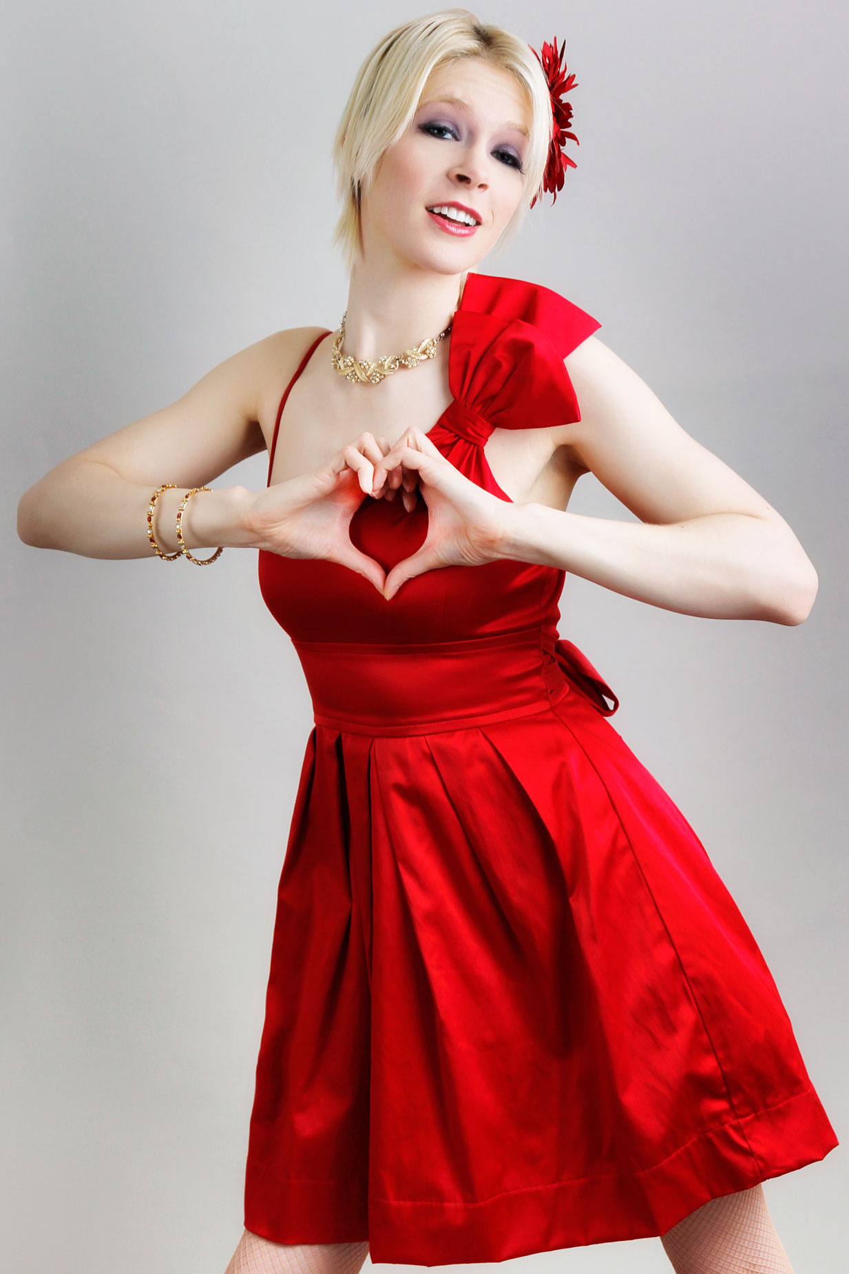 How I made this portrait: To make today’s featured photograph, I used one of the now discontinued Bowens’ Gemini 400Rx monolights. The vivacious Pam Simpson looks great wearing red. She really pops out of the background when I photographed her in my 11×15-foot home studio against a Savage Focus Grey seamless paper backdrop that was supported by JTL background stands.