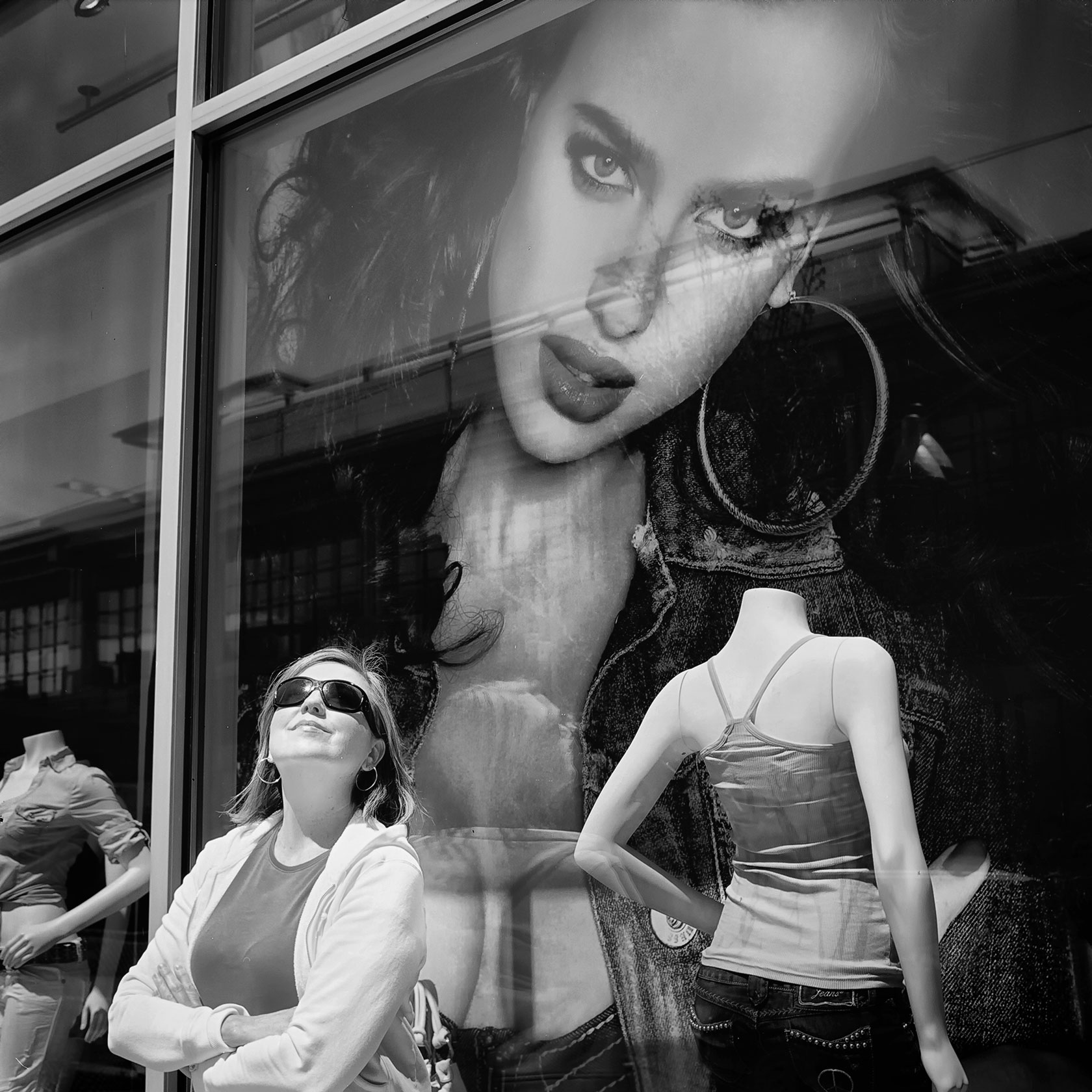How I made this shot: I really like the square format. I photographed Mary with the gold-trimmed Seagull TLR she gave me as a gift. This portrait of her is one of my favorites and was originally made using Kodak Ektar 100 color negative film with an exposure of 1/125 sec at f/11. It’s color negative film but I thought, what the heck, let’s make the image black and white and used Exposure Software’s Exposure to remove all that saturated color putting the emphasis on Mary and the looming photograph in the background.