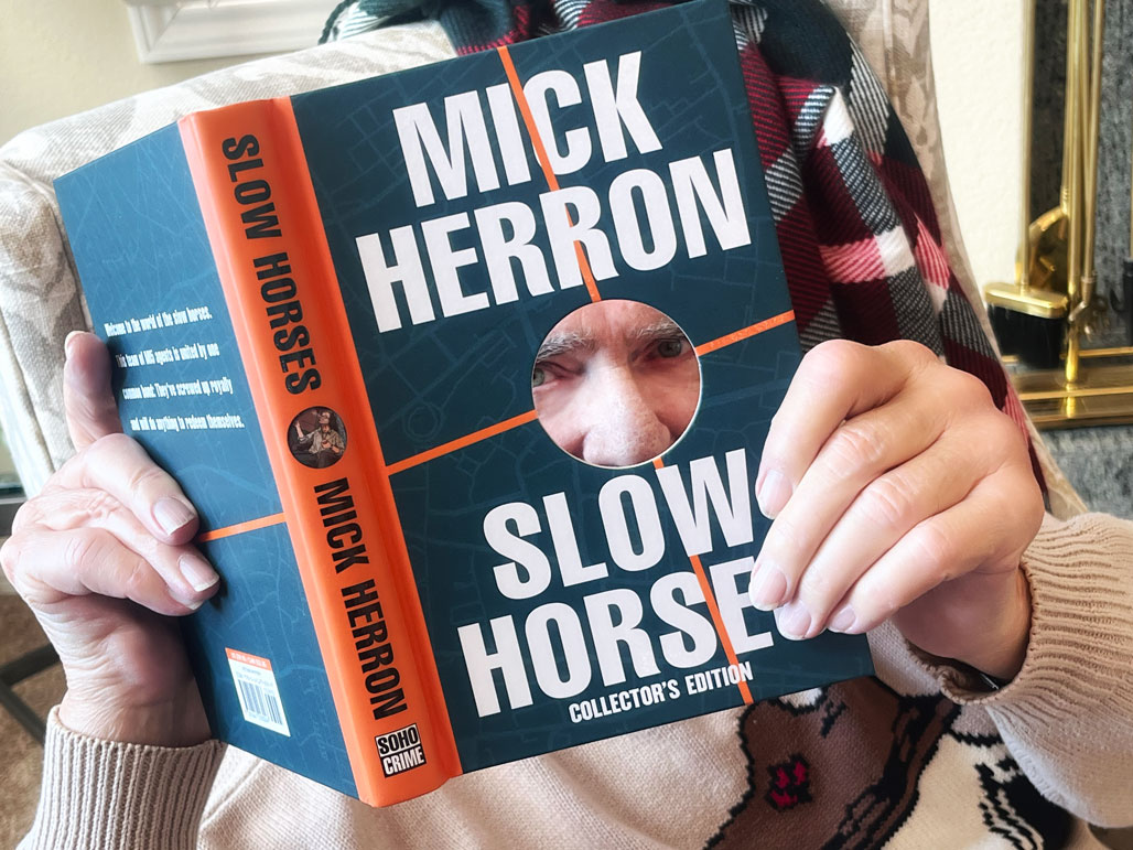 Mary gave me two books for Christmas: The first one was a special signed Collector’s Edition of Mick Herron’ Slow Horses. That’s me looking through the hole in the cover—yes, there’s a hole in the cover—above left. The other book was Mike Lupica’s Showdown, the latest book in the late Robert B. Parker’s Spenser series of mystery novels. Look for reviews of these books real soon now.