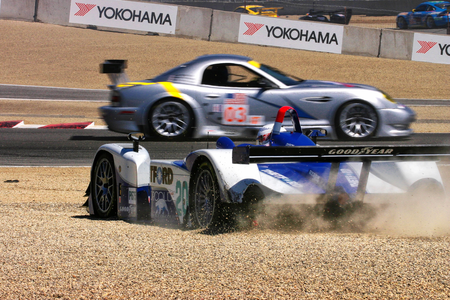 How I Made this Shot: It can get dirty and dusty when shooting at a race track. I photographed this little off-track excursion near the start of an ALMS race at Weathertech Raceway Laguna Seca with a Canon EOS Digital Rebel and an 100-400mm f/4.5-5.6 lens (at 150mm.) Exposure was 1/125th sec at f/20 and ISO 200.