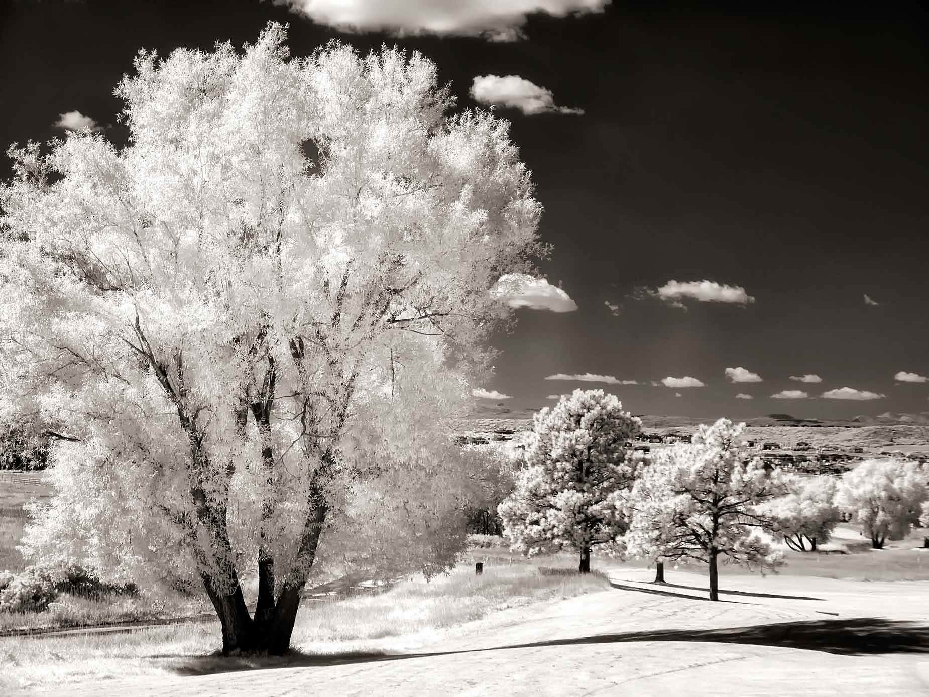 There are lots of ways to convert your infrared RAW or JPEG file into monochrome and you’ll see many of them featured here on this blog. One way is to use Photoshop’s Channel Mixer to produce grayscale images by letting you choose the percentage of contribution from each source color to the final output channel to create high-quality black and white images. Channel Mixer lets you modify the file by using a mix of the image’s color channels allowing you to add or subtract data from a source channel and transfer it to the output channel. Here’s how I use it: