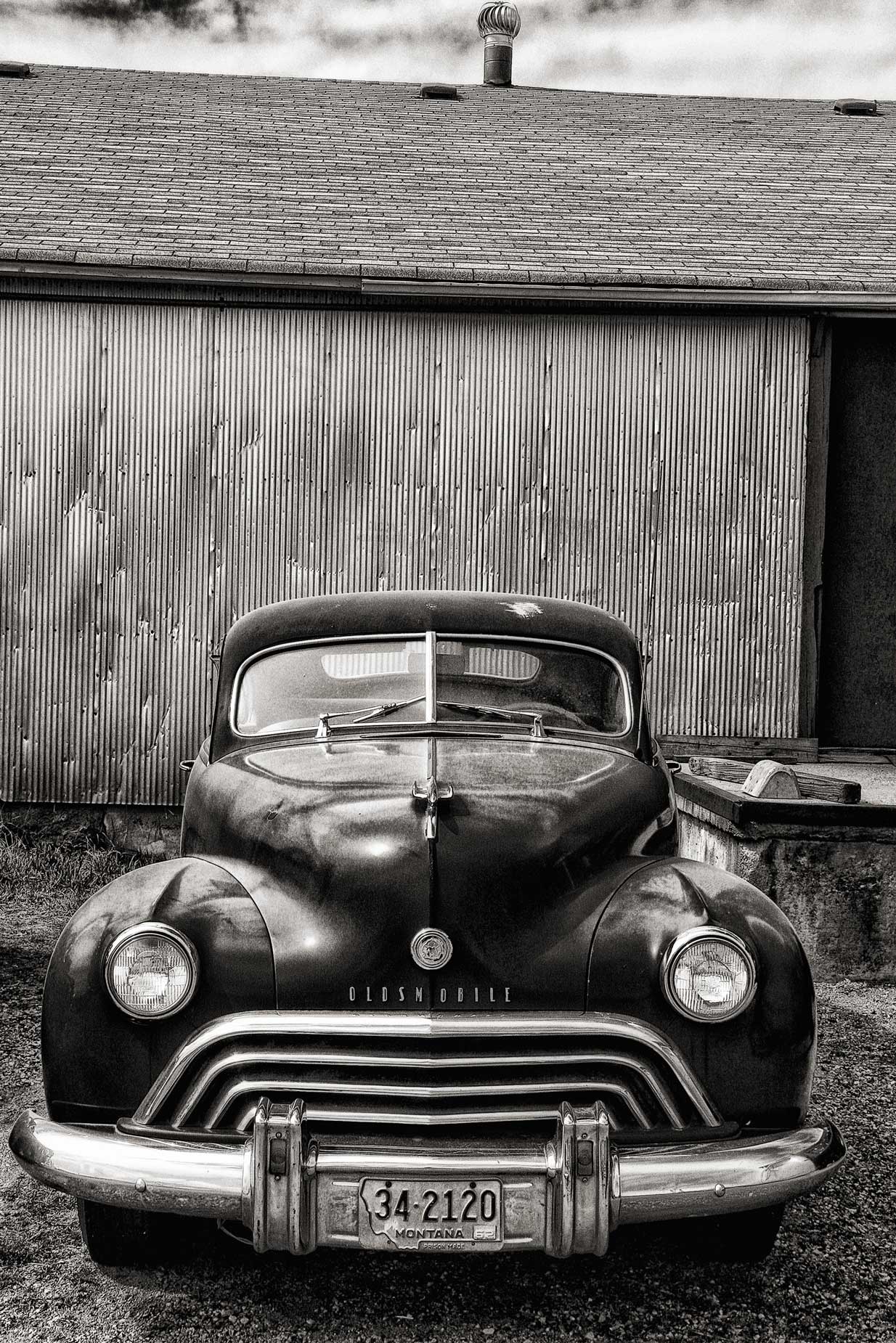 How I made this photograph: The above classic Oldsmobile was photographed at a combination museum, car sales and salvage yard that is located near Eaton, Colorado not Montana as it’s license plate might seem to indicate. The image was made with a Canon EOS 30D and Tamron AF 18-270mm F/3.5-6.3 Di II VC LD Aspherical (IF) MACRO lens (at 18mm) with an exposure of 1/400 sec at f/14 and ISO 200. The image was converted to monochrome using Silver Efex, with Platinum toning from PhotoKit with the Glamour Glow filter from Color Efex added for a little bit of nostalgia.